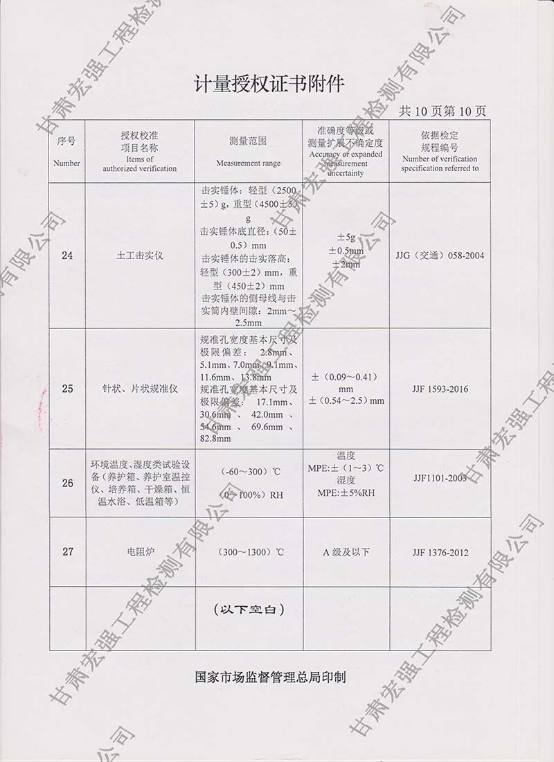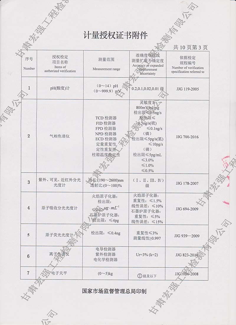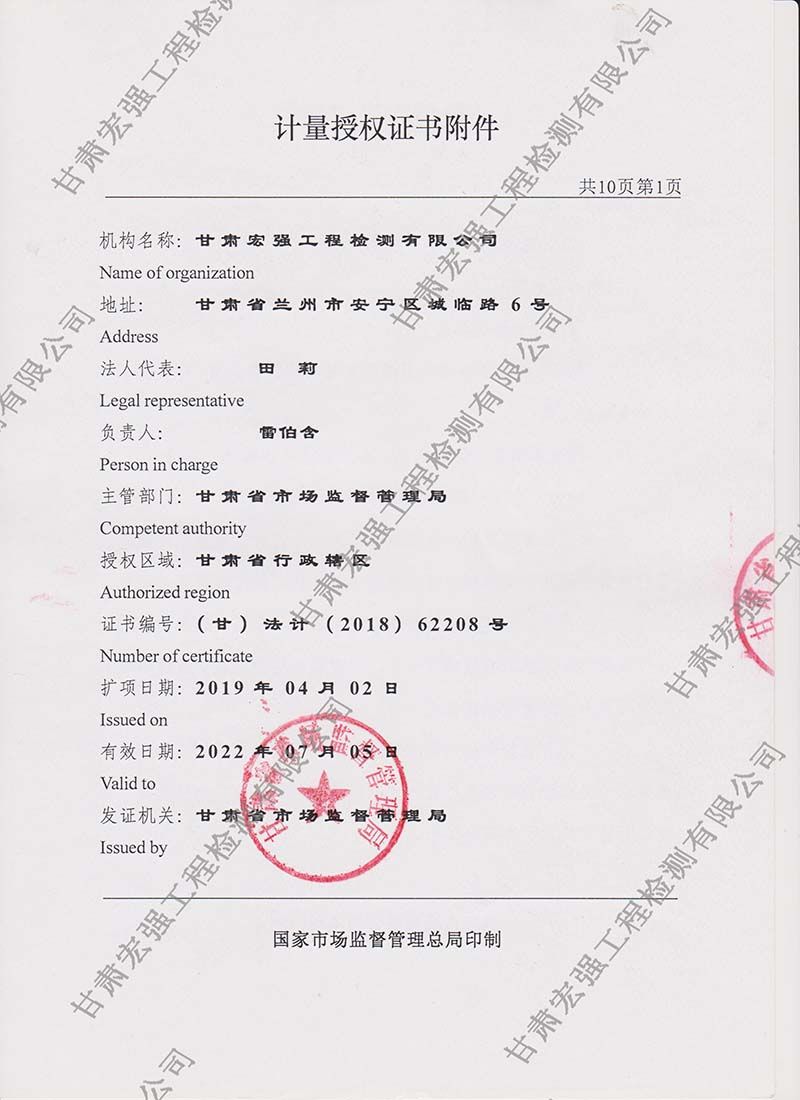 甘肅宏強(qiáng)工程檢測(cè)有限公司(簡(jiǎn)稱“甘肅宏強(qiáng)”,HQGS),現(xiàn)坐落于蘭州市安寧區(qū)城臨路6號(hào),成立于1995年5月,原名甘肅省建筑業(yè)實(shí)驗(yàn)室管理協(xié)會(huì)試驗(yàn)室,是甘肅較早成立的社會(huì)檢測(cè)機(jī)構(gòu)。2002年改為甘肅省高?;▽W(xué)會(huì)試驗(yàn)室,并于當(dāng)年取得CMA計(jì)量**證書(shū),2006年改為甘肅宏強(qiáng)混凝土技術(shù)服務(wù)有限公司。2014年,因業(yè)務(wù)拓展和發(fā)展需要,更名為甘肅宏強(qiáng)工程檢測(cè)有限公司,是具有一定社會(huì)聲譽(yù)的、處于公正地位的第三方檢測(cè)機(jī)構(gòu),分別在安寧本部和蘭州新區(qū)分部開(kāi)展業(yè)務(wù)工作。公司現(xiàn)有計(jì)量**近200多項(xiàng),具有建設(shè)部門(mén)核準(zhǔn)頒發(fā)的建筑工程檢測(cè)甲級(jí),市政工程檢測(cè)乙級(jí),巖土工程檢測(cè)甲級(jí),地基基礎(chǔ)和主體結(jié)構(gòu)檢測(cè)甲級(jí),鋼結(jié)構(gòu)工程檢測(cè),建筑節(jié)能檢測(cè),建筑幕墻及門(mén)窗工程檢測(cè),建筑工程室內(nèi)環(huán)境質(zhì)量檢測(cè)甲級(jí),建筑鋼結(jié)構(gòu)可靠性檢測(cè)等建設(shè)工程質(zhì)量檢測(cè)資質(zhì),環(huán)保部門(mén)核發(fā)的社會(huì)環(huán)境檢測(cè)機(jī)構(gòu)資質(zhì)。